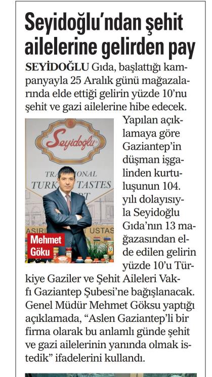 Seyidoğlu'ndan şehit ailelerine gelirden pay